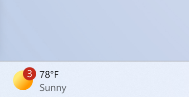 微软开始为小组件推出新的角标体验。当用户错过任务栏上的重要通知时,小组件角标就会进行提示。下面是小组件通知角标的示例,显示有三个错过的通知。