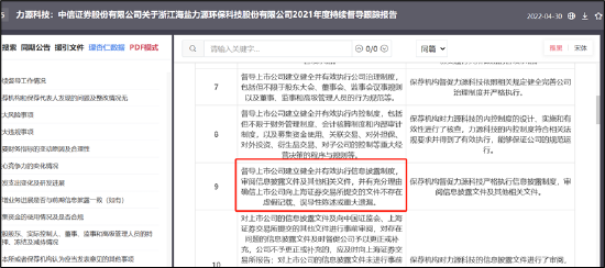 值得注意的是,中信证券保荐的力源科技出现在上市当年财务造假,但中信证券在督导报告却称不存在虚假财报等陈述。